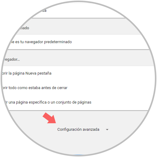 Será desplegada la siguiente ventana donde iremos a la parte inferior y pulsamos sobre la línea Configuración avanzada: