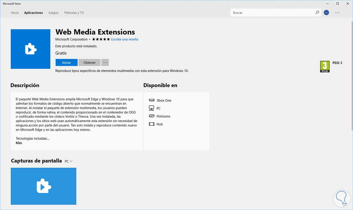 En el caso de Windows 10, podemos hacer uso de la aplicación Web Media Extensions la cual obtenemos gratuitamente en el siguiente enlace: