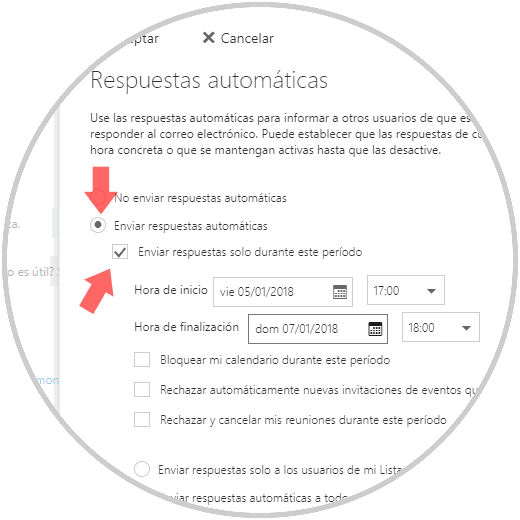 - Fuera de mi organización: Esta opción nos permite enviar la respuesta a todos los usuarios.