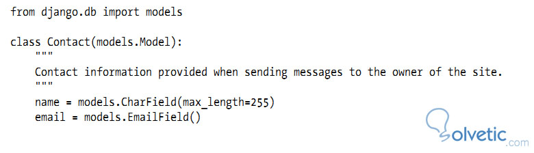 En la siguiente imagen veremos cómo se declara la clase Contact en una aplicación en Django: