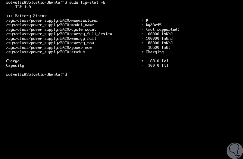 Cuando el proceso de instalación haya finalizado, su archivo de configuración es /etc/default/tlp y tendremos la oportunidad de usar los siguientes comandos para administrar la batería en Linux: