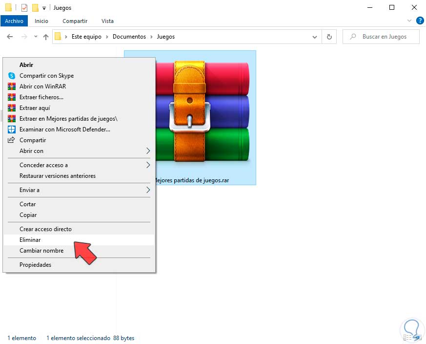 Es normal que eliminemos un archivo dando clic derecho sobre él y seleccionando la opción Eliminar: