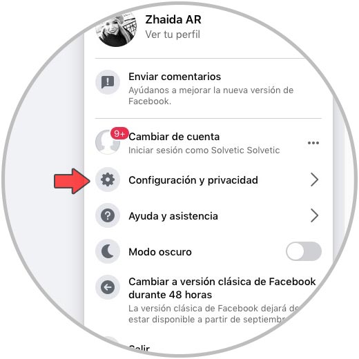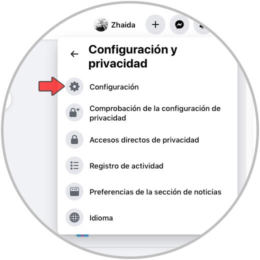Entra en tu cuenta de Facebook desde tu PC. Una vez hayas introducido usuario y contraseña y en tu perfil en el margen derecho, debes seleccionar el menú desplegable y hacer clic en "Configuración y privacidad".