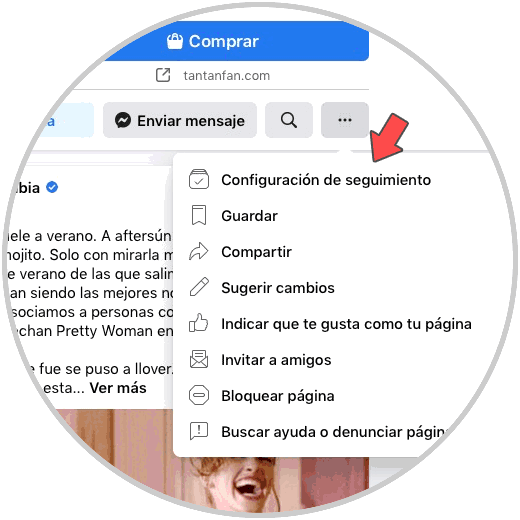 Lo siguiente que debes hacer es una que hayas entrado en esta página, pulsar sobre los tres puntos del menú desplegable. Lo siguiente es seleccionar "Configuración de seguimiento"