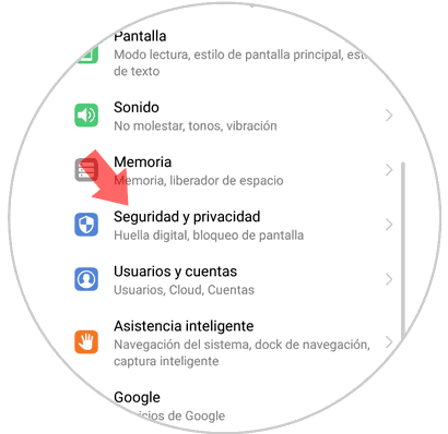 Desliza hacia abajo hasta encontrar la opción de “Seguridad y Privacidad” Pulsa aquí.