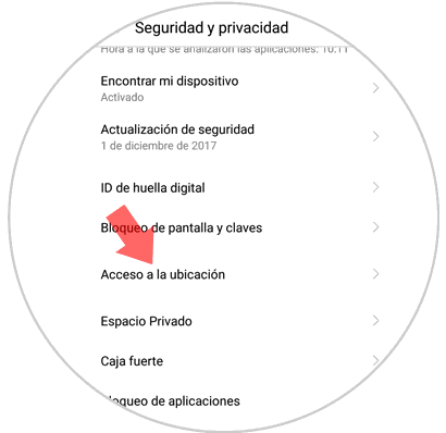 Aquí aparecerán todas las opciones relativas a la protección de la privacidad de tu teléfono móvil. Busca la opción “Acceso a la ubicación” y pulsa para acceder.