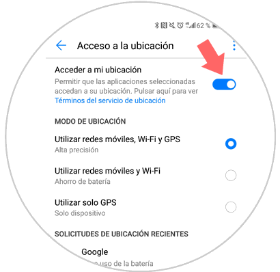 Aparecerás en una nueva pantalla en la cual en la parte superior verás la opción de “Acceso a la ubicación”. Esta opción se mantiene activa por defecto y podrás comprobar esto si la pestaña se encuentra de color azul. Para desactivar la opción desliza la pestaña hacia la derecha y ya estará hecho.