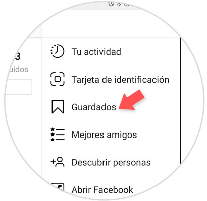 Se deslizará una nueva ventana desde el lado derecho de la pantalla, donde vas a tener que pulsar en la opción de “Guardados”.