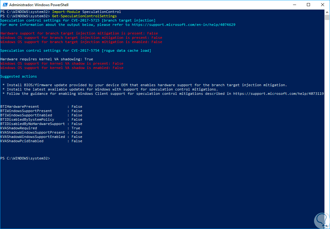 Import-Module SpeculationControl Get-SpeculationControlSettings
