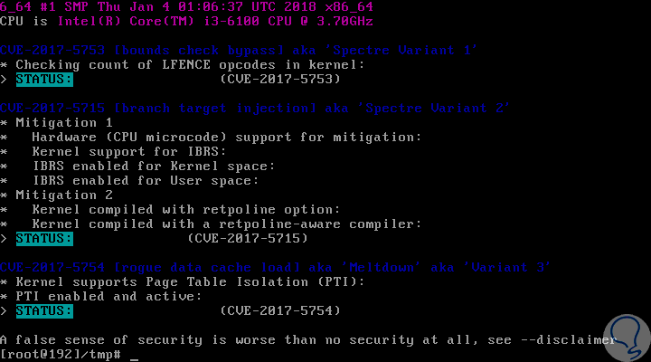 uname -rFinalmente verificamos que las variantes estén aplicadas en el sistema ejecutando lo siguiente: