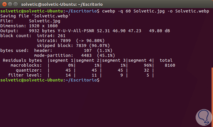 cwebp -q 60 Solvetic.jpg -o Solvetic.webp./cwebp -q 60 Solvetic.jpg -o Solvetic.webp