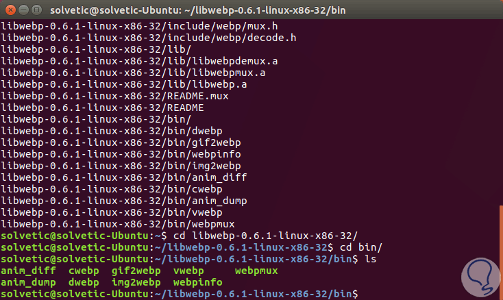 tar -xvf libwebp-0.6.1-linux-x86-32.tar.gzcd libwebp-0.6.1-linux-x86-32/cd bin/ls