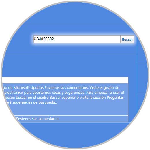 Allí podremos realizar el análisis deseado en el cuadro de búsqueda ubicado en la parte superior escribiendo el número de KB a ubicar, por ejemplo: