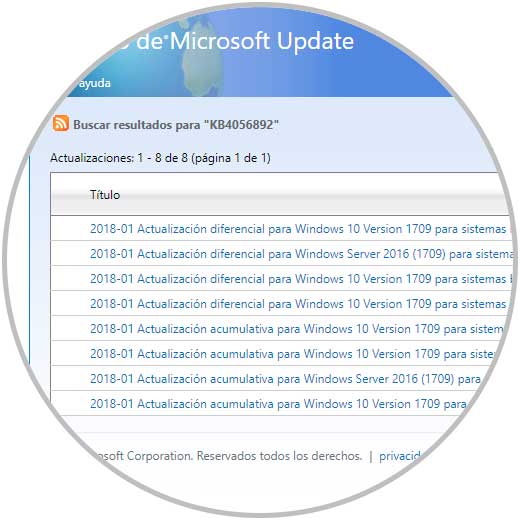 Una vez ingresado este valor pulsamos en el botón “Search” y serán desplegados los resultados asociados a dicha KB: