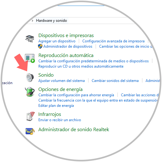 Finalmente daremos clic en la línea Sonido para acceder a la función clásica de sonidos del sistema operativo: