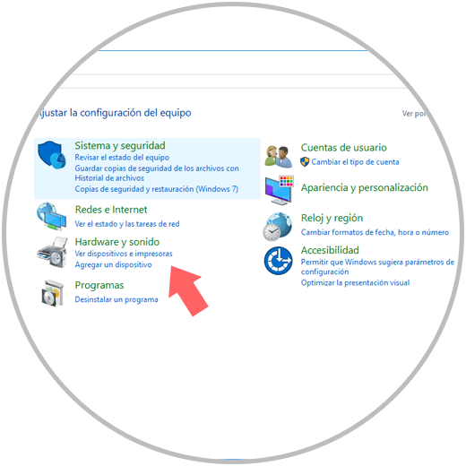 Allí daremos clic en la línea Hardware y sonido y veremos las siguientes opciones.