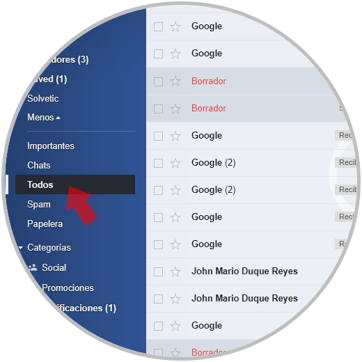 El primer método a usar será a través de esta opción llamado Todos, para ello accedemos a nuestra cuenta de correo, y en la parte izquierda pulsamos en la línea Todos: