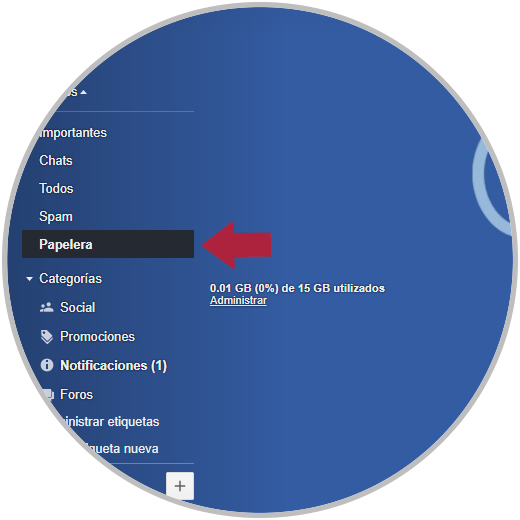 Es uno de los primeros métodos que podemos usar ya que allí es donde se alojan los correos que hemos eliminado. Para esto vamos al costado izquierdo de Gmail y seleccionamos la opción Papelera y en el panel central veremos los correos eliminados: