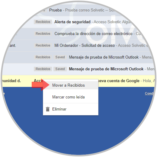 Allí, al igual que el paso anterior podemos dar clic derecho sobre el correo y moverlo a los Recibidos para su recuperación.