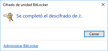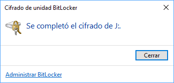 Una vez este proceso concluya veremos el siguiente mensaje. Pulsamos en Cerrar para salir del asistente. De esta forma se ha cifrado la tarjeta SD seleccionada.