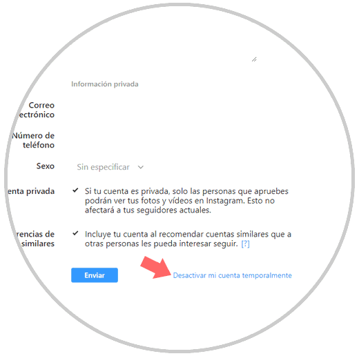 Ahora aparecerás en una nueva pantalla donde en la parte inferior verás “Desactivar mi cuenta temporalmente”. Pulsa aquí.