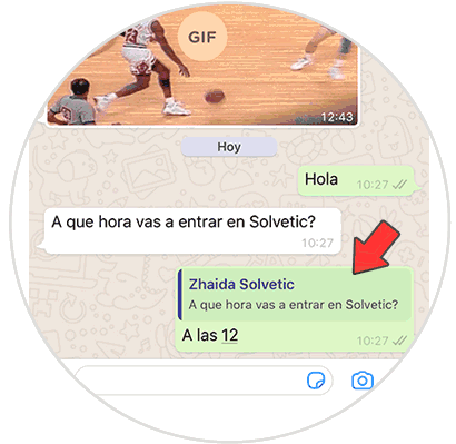 Lo primero es entrar en el chat y manatener pulsado el mensaje el cual queremos citar.