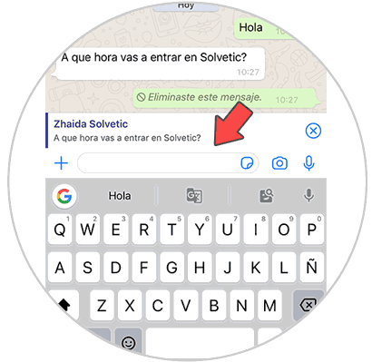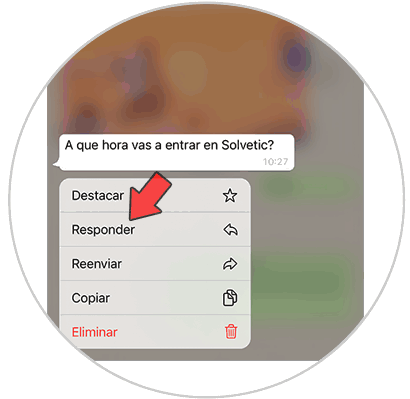 En el caso de nuestro dispositivo sea iOS, la forma para citar un mensaje desde el chat de WhatsApp es la siguiente.