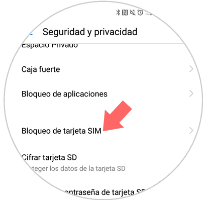 Ahora entre todas las opciones deslizando hasta abajo verás la opción “Bloqueo de tarjeta SIM”. Pulsa en esta opción para cambiar el pin de tu tarjeta SIM