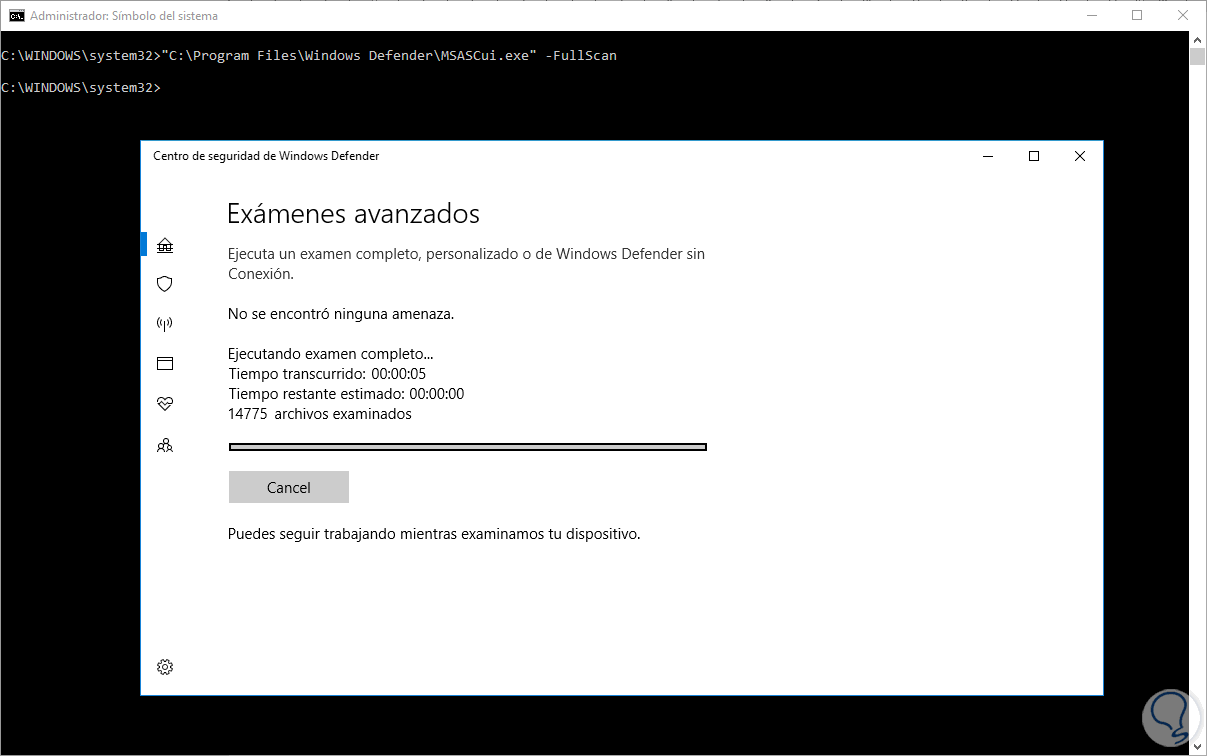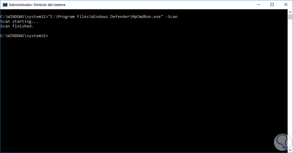 Si deseamos ejecutar este escaneo desde el modo de consola debemos ejecutar la siguiente línea en el símbolo del sistema: