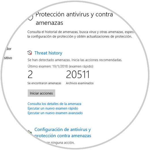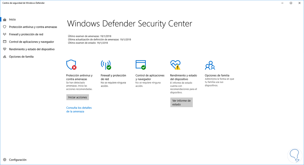 Los resultados podremos verlos en la consola del Centro de Windows Defender: