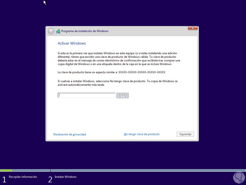 2. Poner clave de Windows 7, 8 u 8.1 en proceso de instalación Windows 10