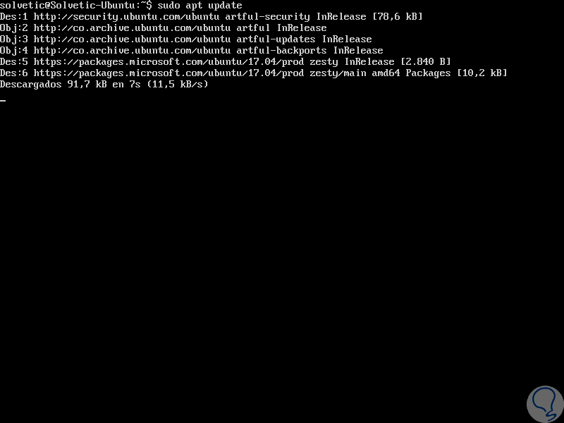 sudo sh -c 'echo "deb [arch=amd64] https://packages.microsoft.com/repos/microsoft-debian-stretch-prod stretch main" > /etc/apt/sources.list.d/microsoft.list'Actualizamos los productos: