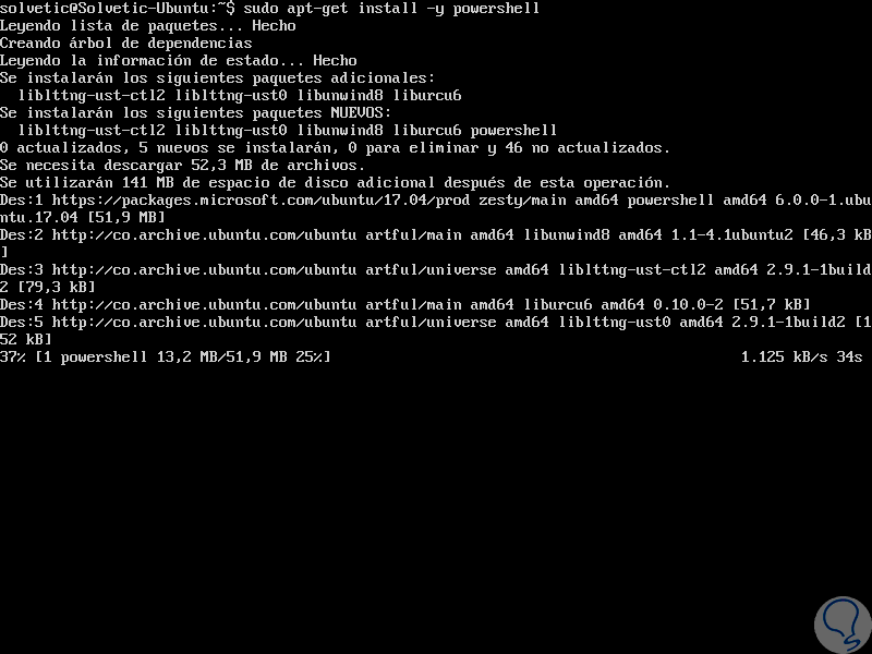 sudo apt-get install -y powershellEjecutamos la utilidad: