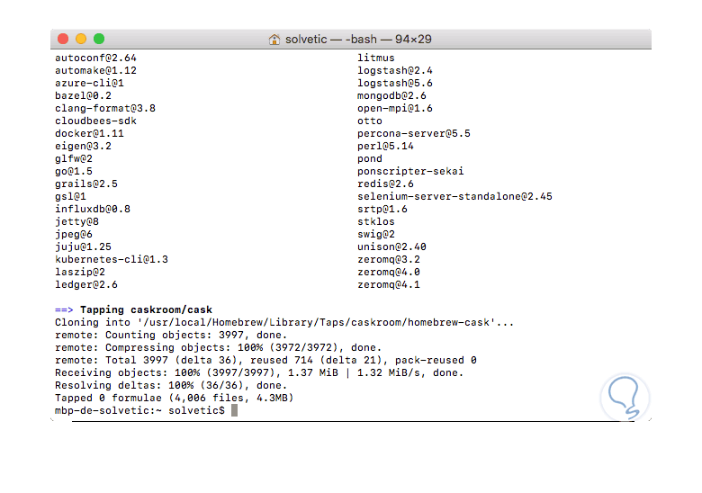 Una vez instalado HomeBrew ejecutaremos la siguiente línea: