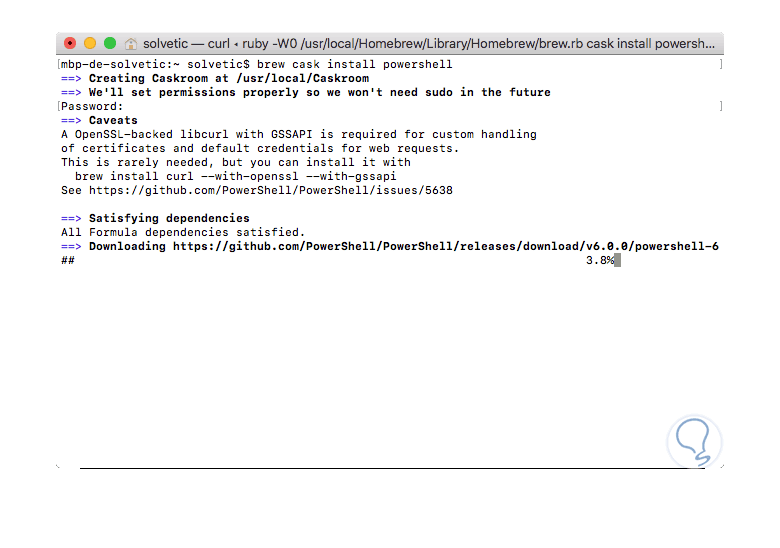Cask es una utilidad que nos permite instalar paquetes adicionales en macOS. Una vez instalado ejecutaremos la siguiente línea para instalar PowerShell Core: