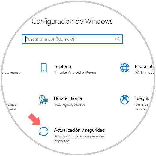 Allí pulsaremos sobre la opción Actualización y seguridad y en la nueva ventana desplegada vamos a la sección Solucionar problemas: