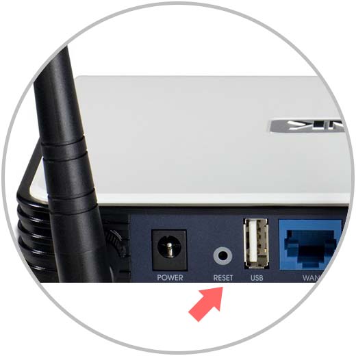 - En caso de que este paso no funcione, podemos resetear el modem a los valores de fabrica para que todo vuelva a su funcionamiento original, para ello contamos con la siguiente opción que consiste en pulsar por tres segundos el botón Reset ubicado en la parte trasera del modem: