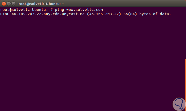 Podremos realizar ping a un sitio web para ver si hay o no respuesta, recordemos que el comando ping nos permite ver la disponibilidad de un sitio web enviando una serie de paquetes y recibiendo respuesta de éstos. En este caso podemos ver que han pasado varios minutos y no se obtiene ningún tipo de respuesta.