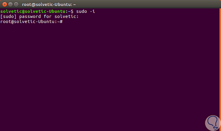 En este ejemplo usaremos Ubuntu 17 y para ello accedemos a la terminal y en primer lugar debemos iniciar sesión como usuarios root ejecutando el siguiente comando: