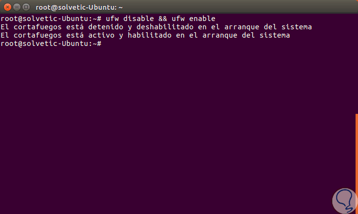 ufw disable && ufw enable