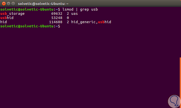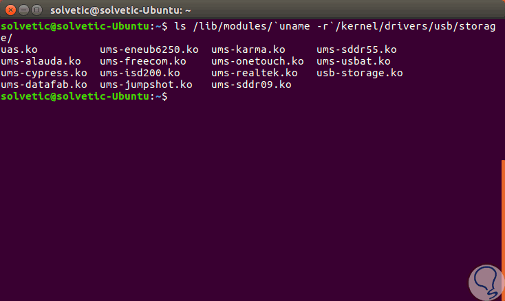 Para deshabilitar el soporte de medios USB en el servidor, en primer lugar, será necesario identificar si el controlador de almacenamiento está cargado en el kernel de la distribución, en este caso Ubuntu 17, y validar el nombre del controlador responsable de este medio de almacenamiento.