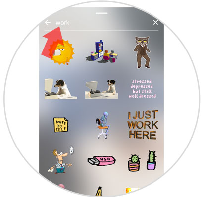 Aquí aparecerán todos los GIFs que puedes añadir a tu historia. En la parte superior aparece un buscador que puedes utilizar para encontrar el GIF de la temática que buscas más rápidamente. Una vez que elijas el que te gusta pulsa sobre él para incluirlo en tu historia.