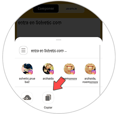 Ahora, pulsa en “Mi historia” para publicar este mensaje para tus seguidores en Instagram.