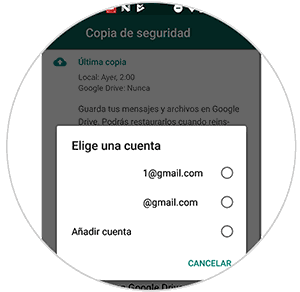 A continuación, verás todas las copias de seguridad que se han almacenado en tu cuenta de Drive. En este caso selecciona la cuenta de WhatsApp