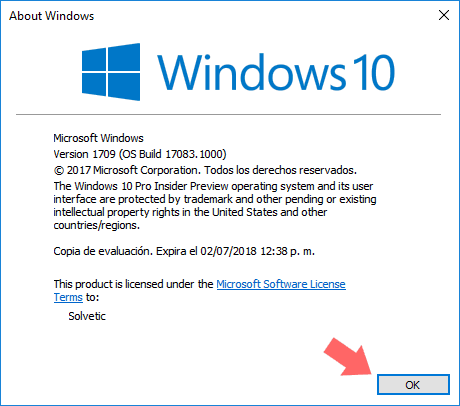 Recordemos que debemos ejecutar como mínimo la versión 17083 de Windows 10 y para comprobar esto usaremos las teclas siguientes: