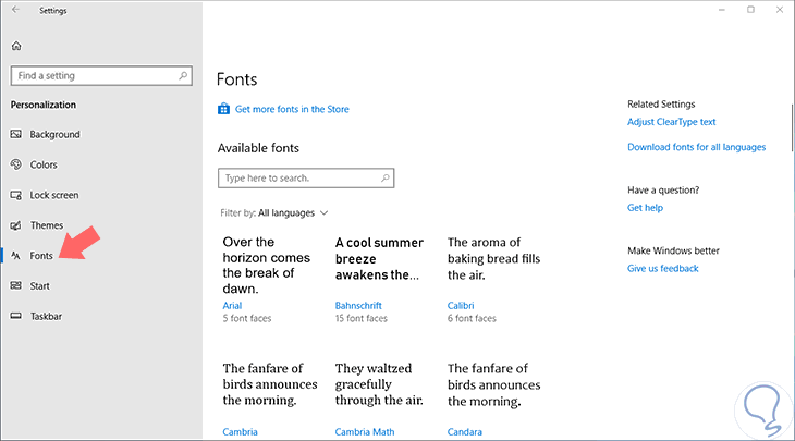 1. Cómo instalar fuentes desde la tienda de Microsoft en Windows 10