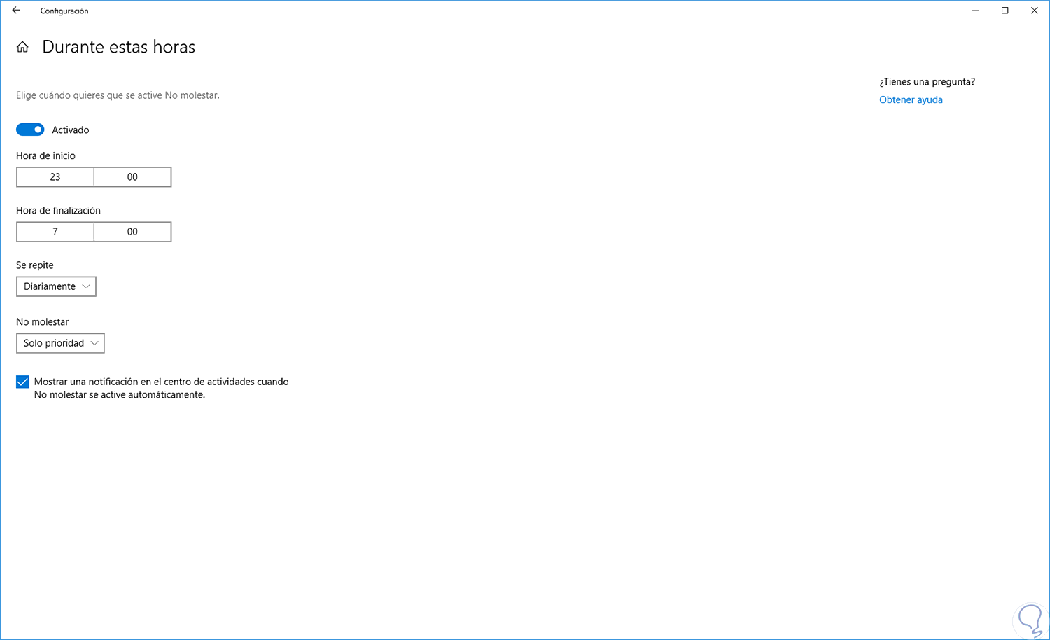 Te enseñamos cómo puedes programar las horas de no molestar en Windows 10 para que no te aparezcan notificaciones ni avisos.
