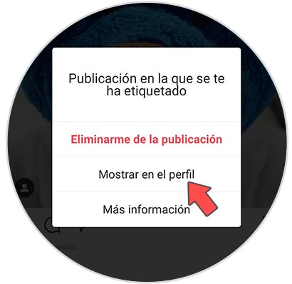 Puedes seleccionar "Mostrar en el perfil" si quieres mantener esta etiqueta o eliminar etiqueta, si no quieres que aparezca en tu perfil, seleccionar "Eliminarme de la publicación"