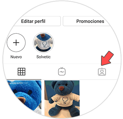 Lo primero que debes hacer es seleccionar el icono de las etiquetas de tu perfil de Instagram.