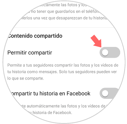 En el caso de que activemos esta pestaña, nuestro contenido podrá ser compartido. Si desactivamos esta pestaña, no importa si nuestra cuenta de Instagram no es privada ya que únicamente nuestros seguidores podrán ver las historias que subamos a nuestro perfil. En el caso de que otro usuario quiera verlo, no podrá hacerlo a no ser que nos comience a seguir.